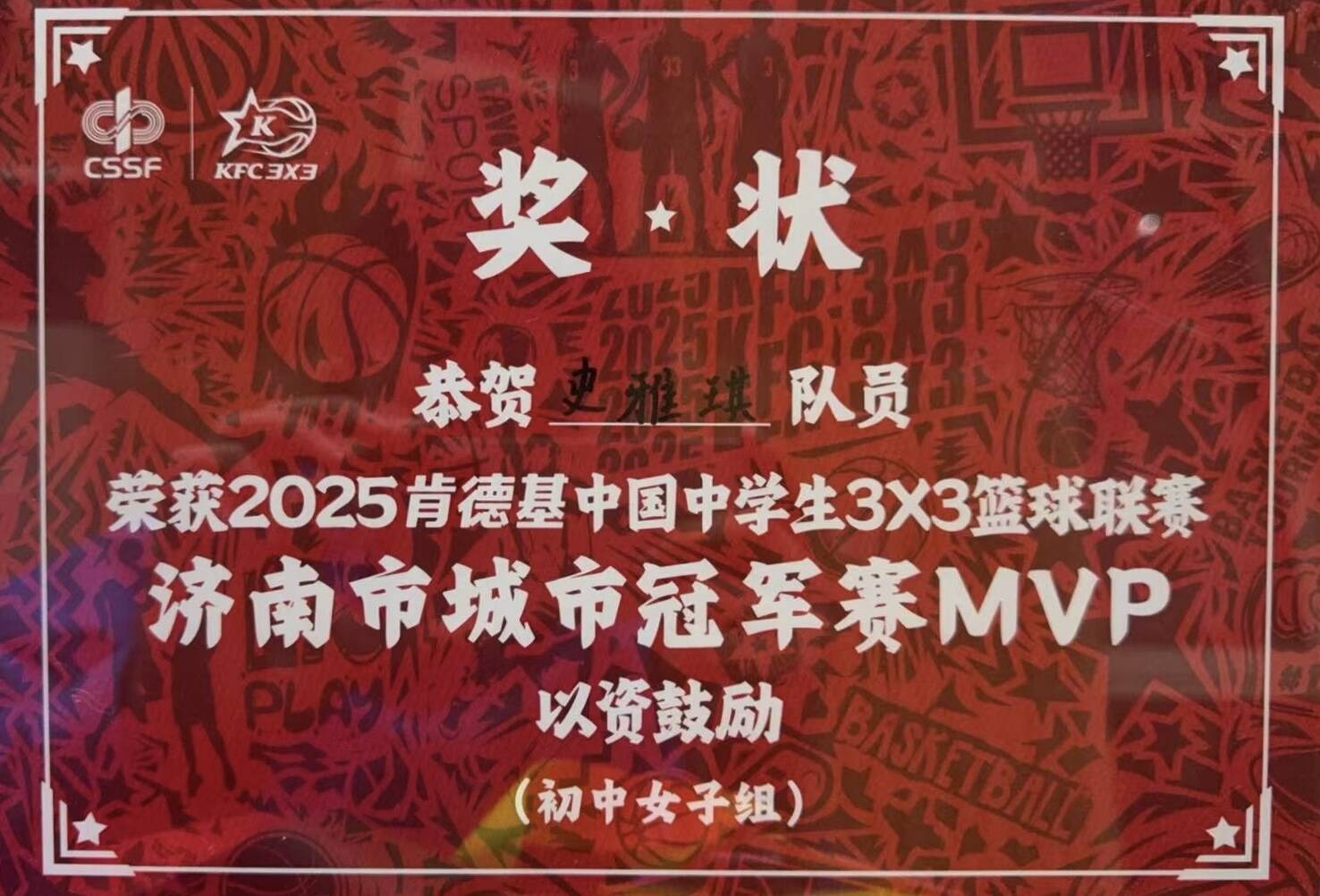 济南十二中女篮勇夺2025肯德基中国中学生3×3篮球联赛“济南市城市冠军赛”桂冠