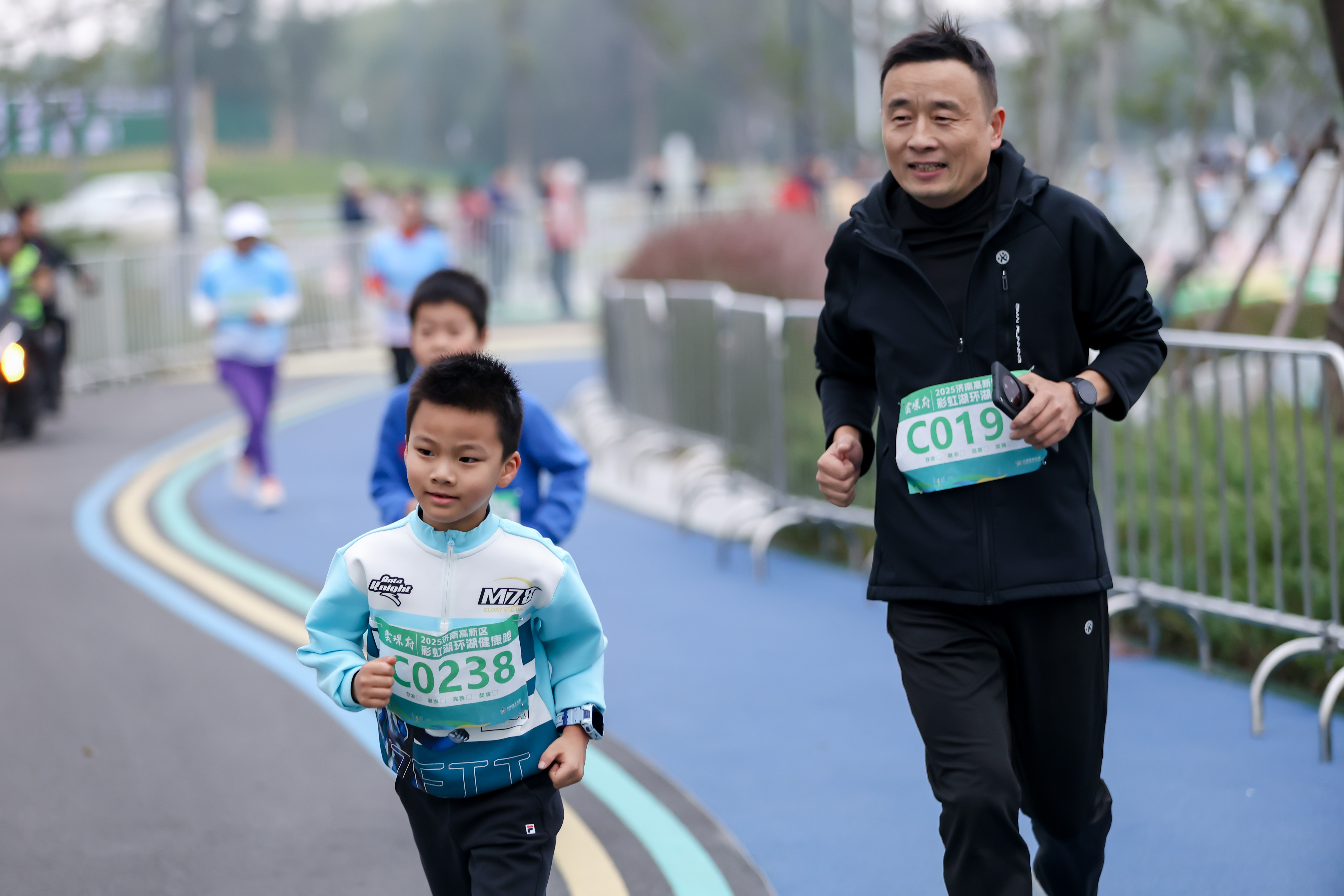 比赛设8公里竞速组和4公里亲子组,最大限度满足各年龄群体的参赛需求。年龄最大的61岁,最小的仅5岁,很多选手是全家总动员,爸爸参加8公里竞速组,妈妈带着孩子参加4公里亲子组,轮流参赛、交替驻守在赛道旁加油助威,全家共享运动健康和快乐。