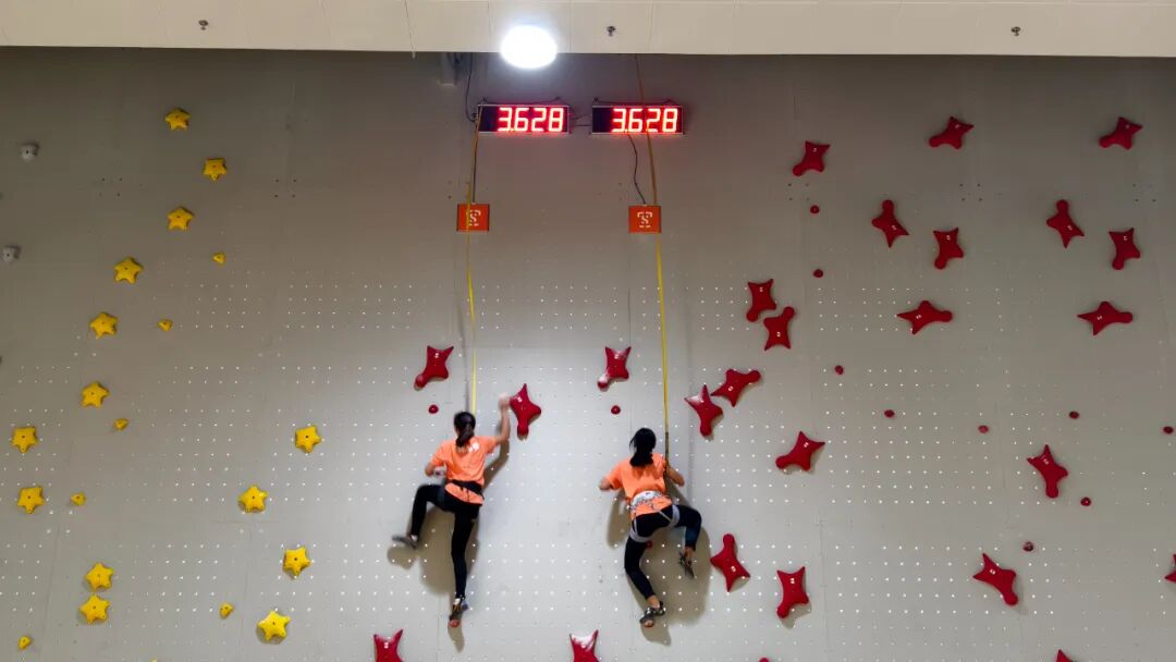 训练中心历时2个月建设,投资80余万元,涵盖8条国家标准速度分段训练道,采购国际标准速度保护器、国际标准速度计时器、国际标准速度道岩点等超高标准设施和设备,设置了青少年国家标准速度赛道、儿童国家标准速度赛道,以及其他辅助训练设备和设施,是承接市级、区级专业攀岩赛事的“竞技场”,也是面向青少年体验攀岩运动的“健身乐园”,又是历城区中、小学青少年攀岩专项训练的“训练场”。