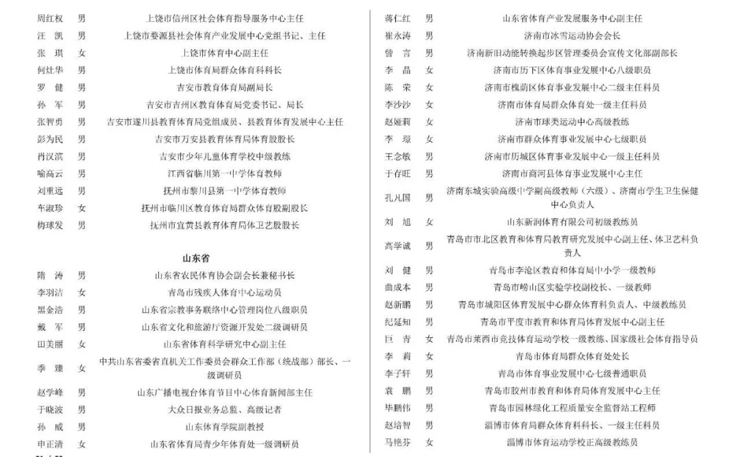 此次“双先”名单中,济南市全民健身中心等12家单位获评全国群众体育先进单位,10人获评全国群众体育先进个人,济南市体育总会荣获全国体育系统先进集体,济南射击运动员李越宏荣获全国体育系统先进个人。