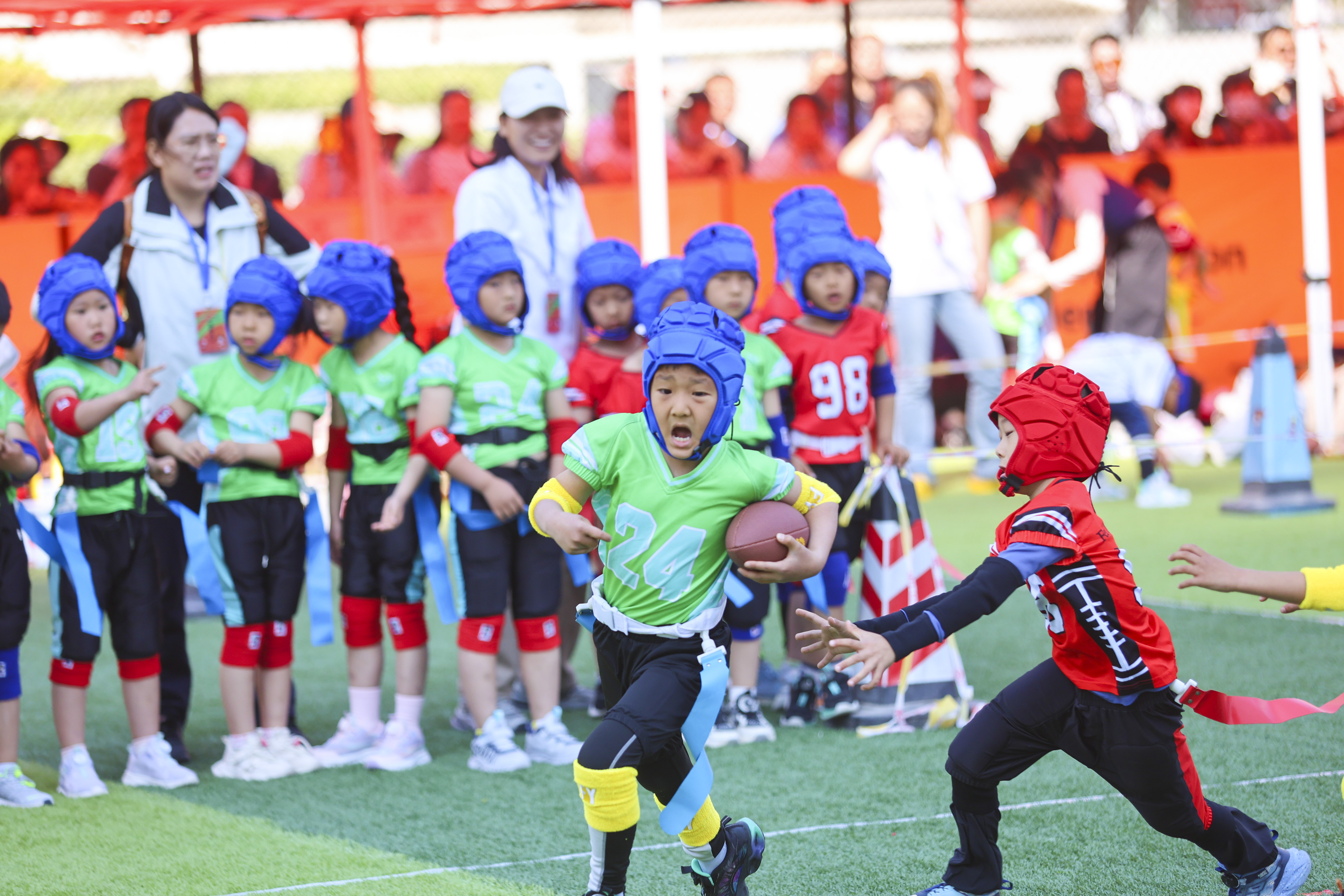 本次嘉年华项目设置丰富,涵盖幼儿腰旗橄榄球游戏展示、幼儿篮球游戏展示、5vs5幼儿腰旗橄榄球趣味团体活动、3vs3幼儿篮球趣味团体活动等4个项目。