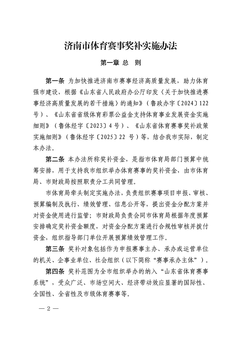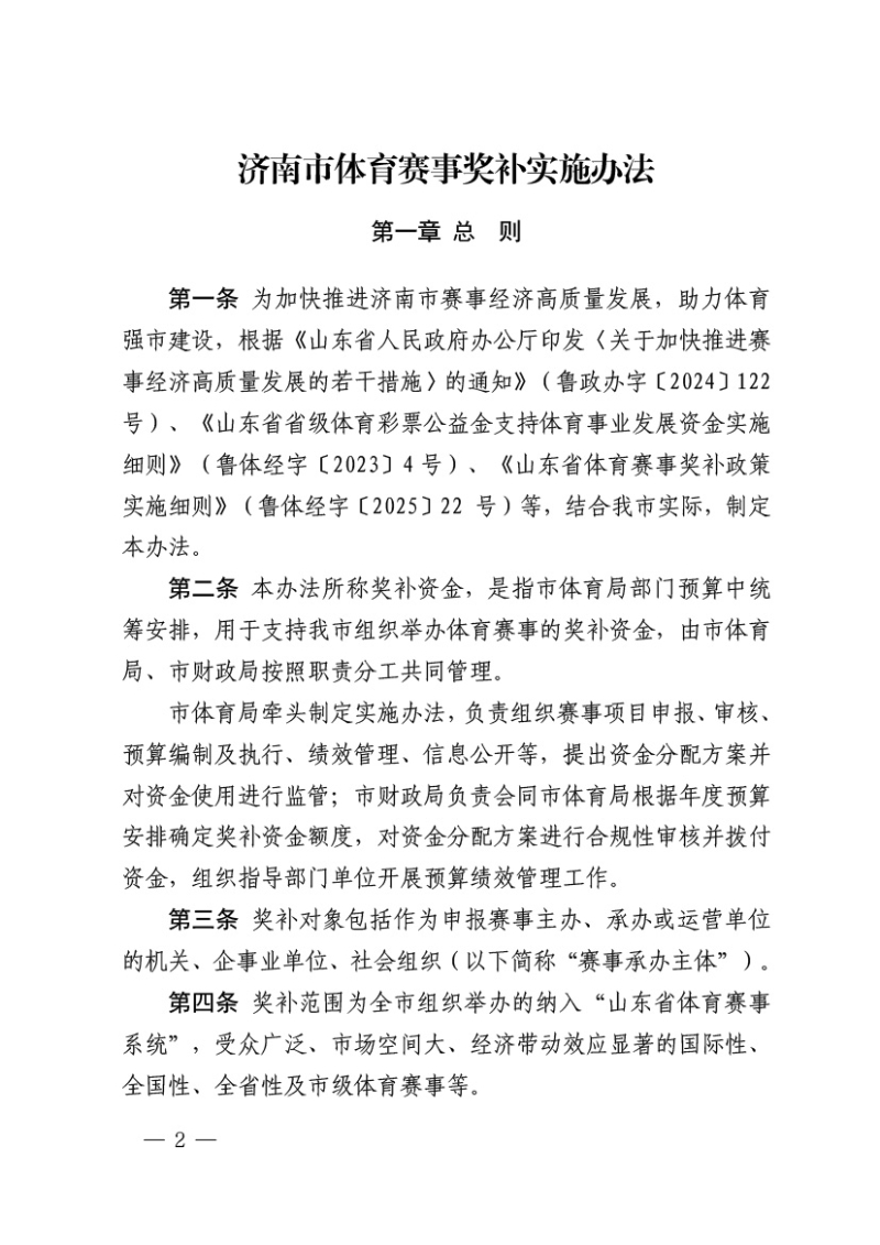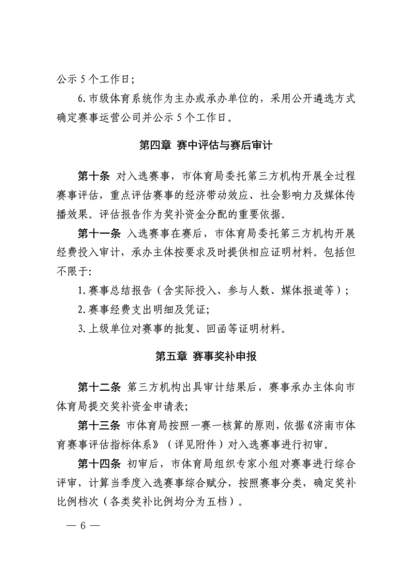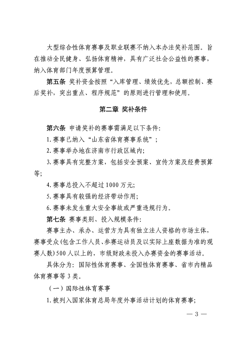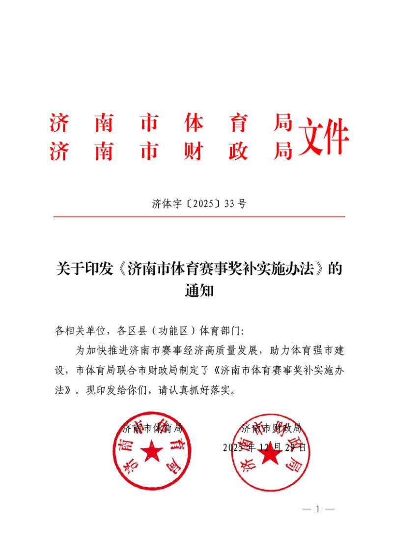 关于印发《济南市体育赛事奖补实施办法》的通知