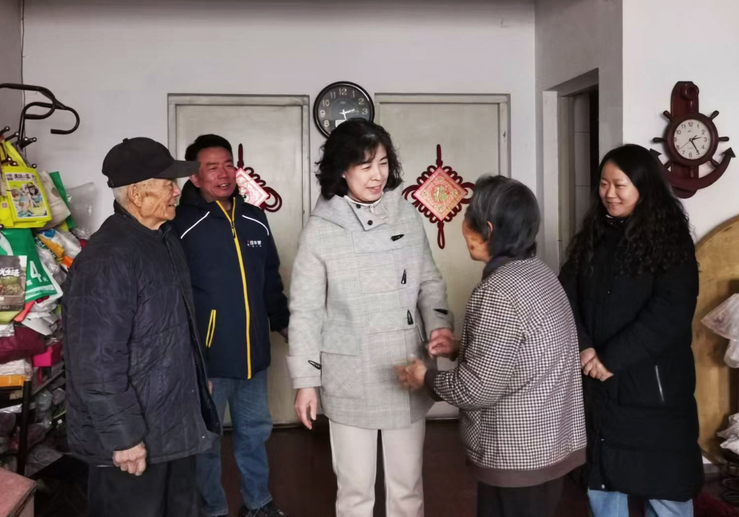 在社区工作人员的带领下,林小青一行为社区三户困难群众送去了米、面、油等爱心物资,与群众促膝长谈、亲切交流,详细询问他们的身体情况、家庭生活状况及实际困难诉求,勉励他们树立信心,在党和政府的关怀下,以积极心态面对生活、克服困难。同时,叮嘱群众保重身体、注意防寒保暖,衷心祝愿他们马年吉祥、阖家安康,在新的一年里日子越过越红火。