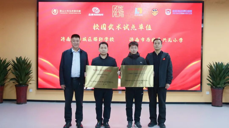 王建军、王永为历城区稼轩小学与历城区兴元小学授予“校园武术试点单位”牌匾