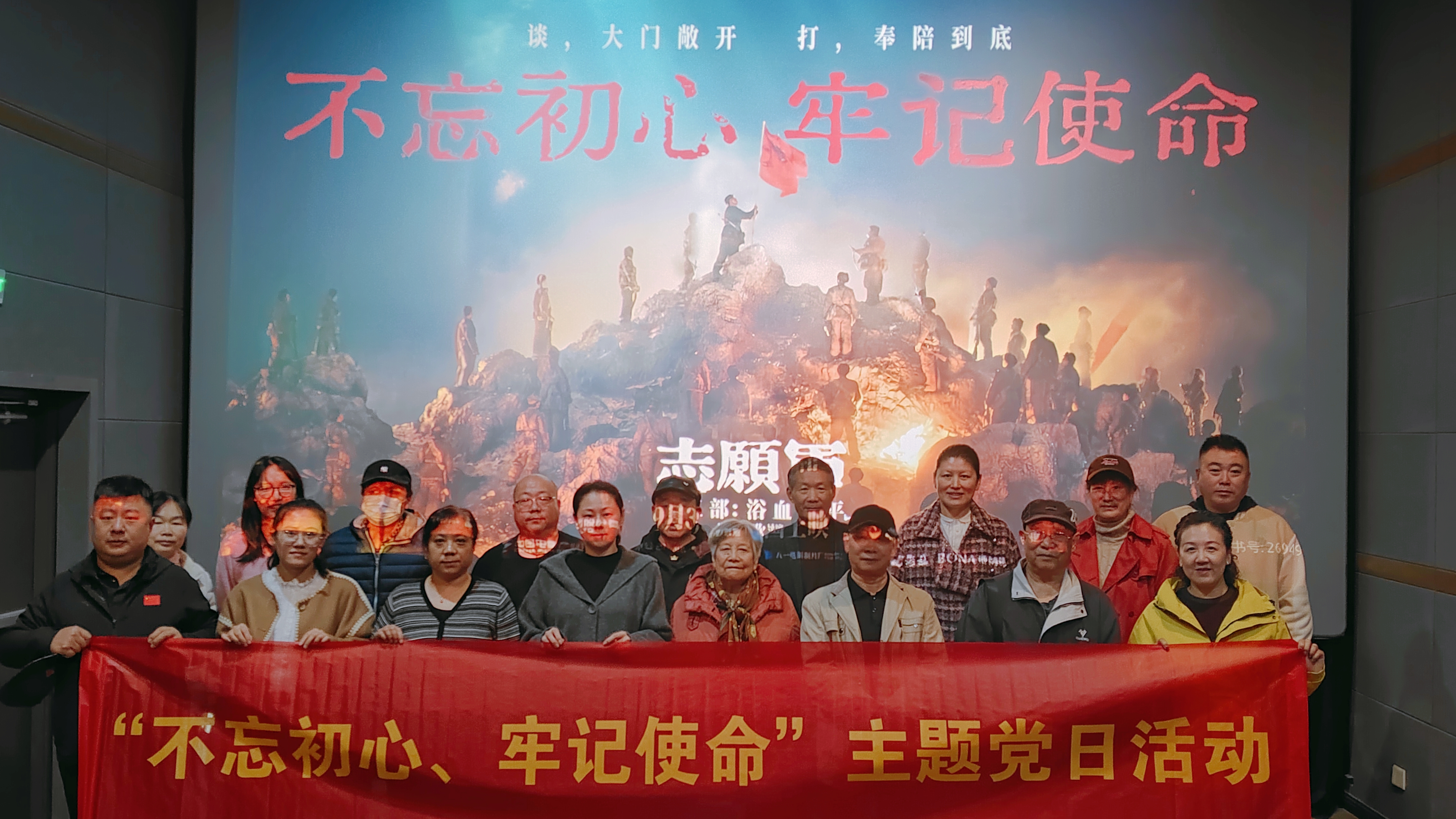 在重阳节来临之际,为深化党史、新中国史学习教育,传承红色血脉,并践行尊老敬老的中华优秀传统美德,济南市球类运动中心组织退休、在职和双报到社区(北徐社区)党员干部于10月29日下午举行“不忘初心、牢记使命”主题党日暨重阳节主题观影活动,共同观看红色电影《志愿军:浴血和平》。
