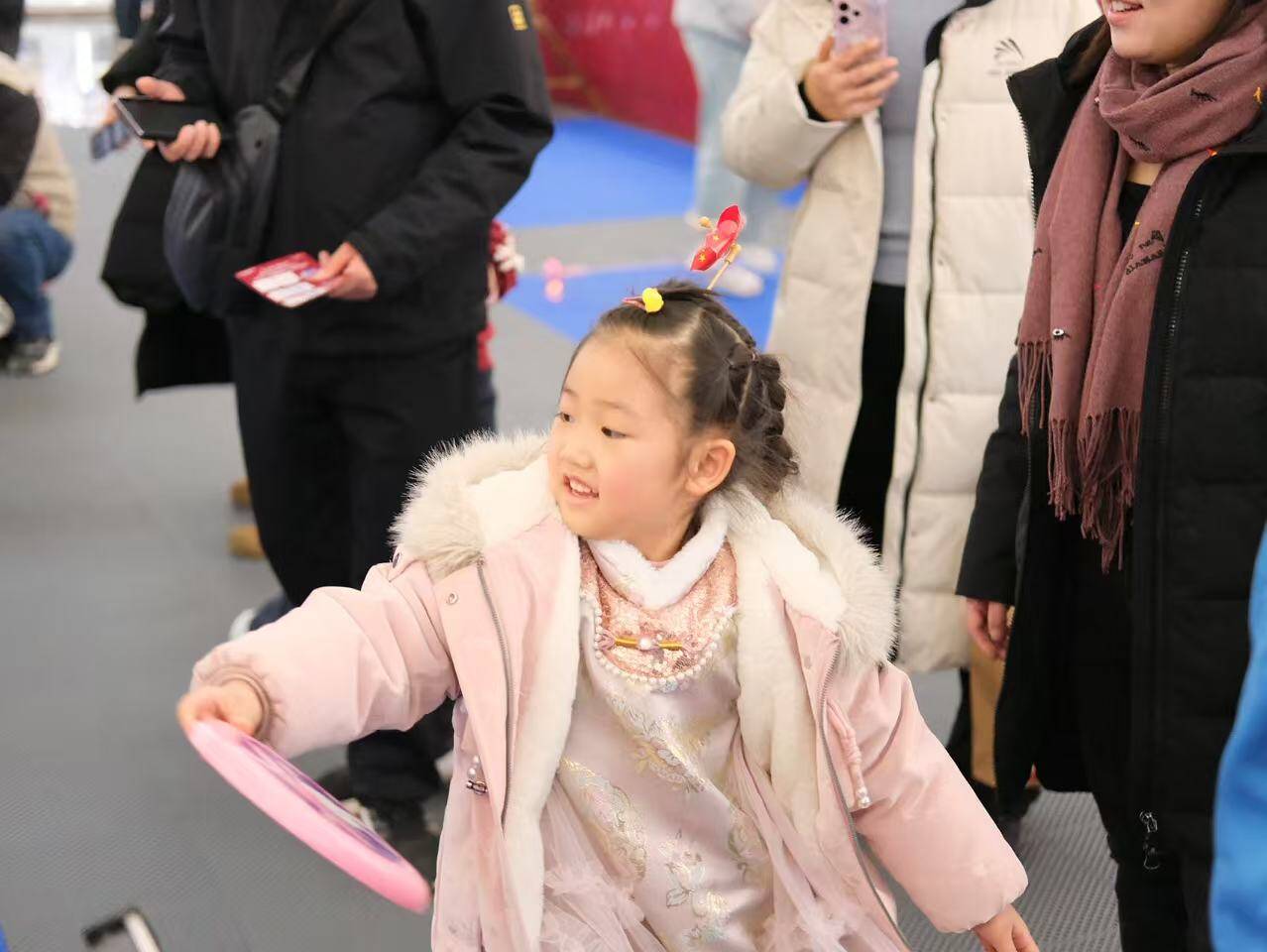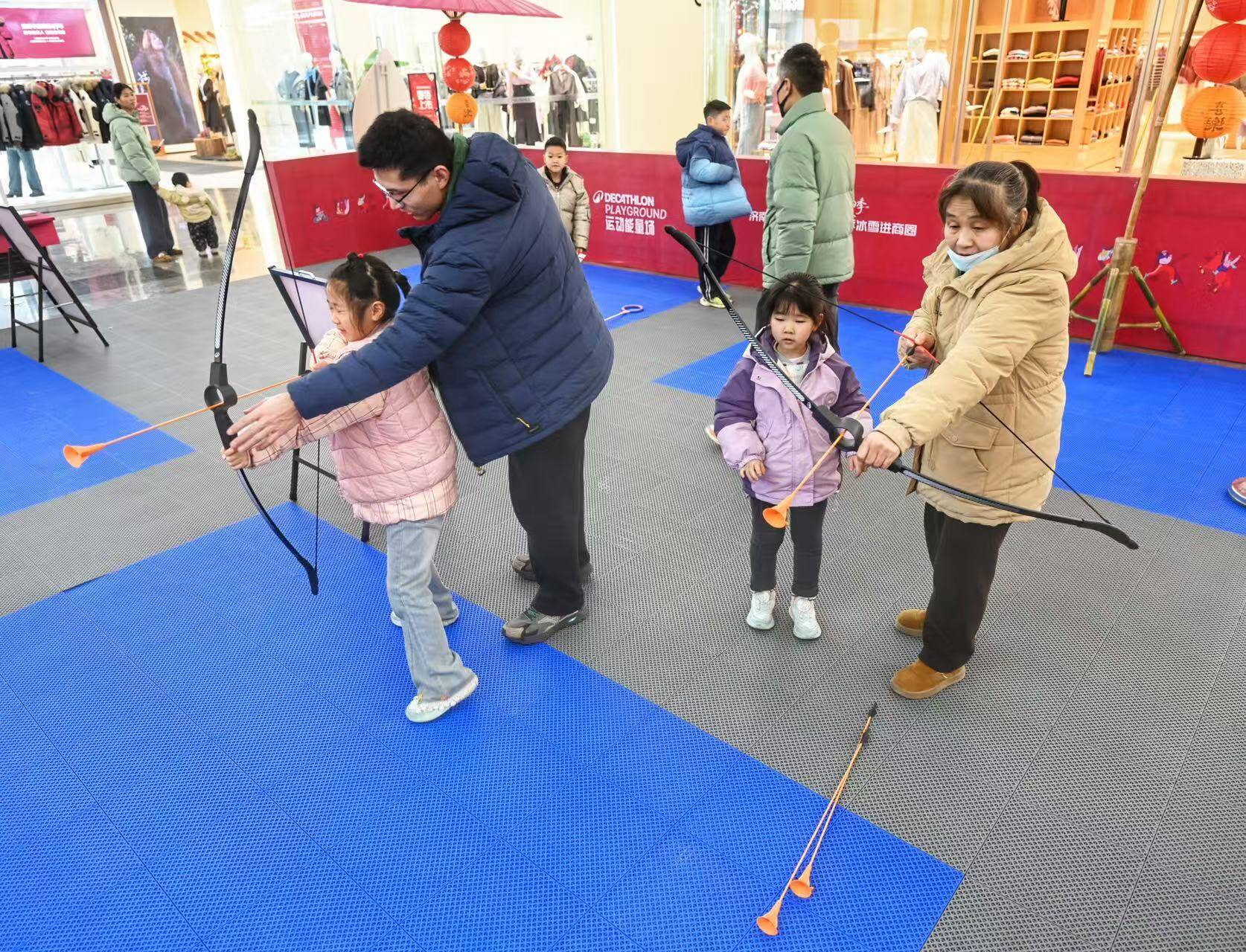 活动紧扣全民健身与消费融合发展主线,将冰雪运动乐趣与互动体验融入市民高频消费场景,现场设置趣味冰壶、趣味飞盘、椭圆机、射箭等六大免费挑战项目,兼具运动性与娱乐性,成为冬日里吸引家庭亲子参与的热门打卡地,父母与孩子并肩挑战、共同体验的温馨场景,为西部商圈增添了浓浓活力。活动还设置多重参与激励机制,让市民在体验运动乐趣的同时收获满满福利。同步开启抽奖环节,冰雪消费季周边、“冰雪一票通”等好礼轮番送出,其中“冰雪一票通”可让市民在全市10家合作冰雪场地享受专属免费权益,有效降低冰雪运动参与门槛,让更多群众共享体育发展成果。
