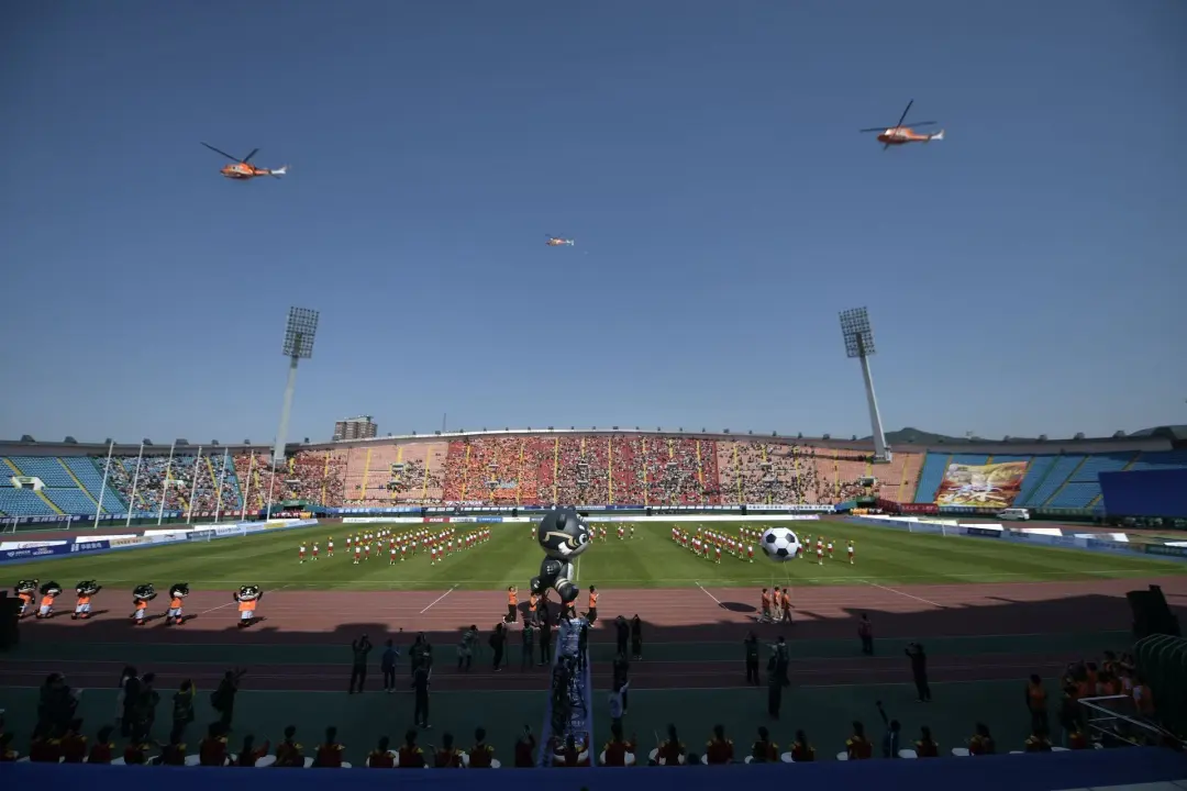 为保障赛事安全有序,24025名主客队球迷依次进入看台。看台上,主队球迷方阵统一着装,客队球迷亦齐声高呼,双方文明观赛、激情互动,营造出热烈的比赛氛围。随着开球时间临近,看台上鼓点逐渐密集,旗手奋力挥舞队旗,领喊举起喇叭,全场情绪被一点点推高。