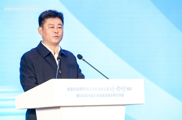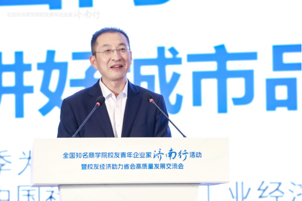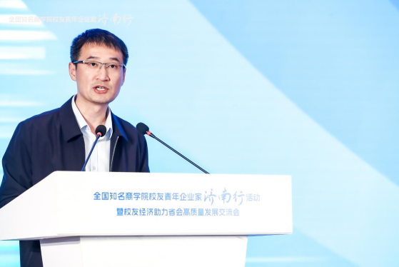 共青团济南市委书记贾文在致辞中表示,真诚邀请优秀的商学院校友青年企业家朋友们持续关注济南、走进济南、选择济南,感受济南的独特魅力,在各领域、各行业与济南深化交流、加强合作,把把好的成果转化在济南,把好的产品应用在济南,把好的产业发展在济南。团市委始终聚焦党政中心,持续在助力经济建设、双招双引、青年发展等方面,不断提升大局贡献度,努力为企业发展服务,为产业升级赋能,为济南腾飞聚势。